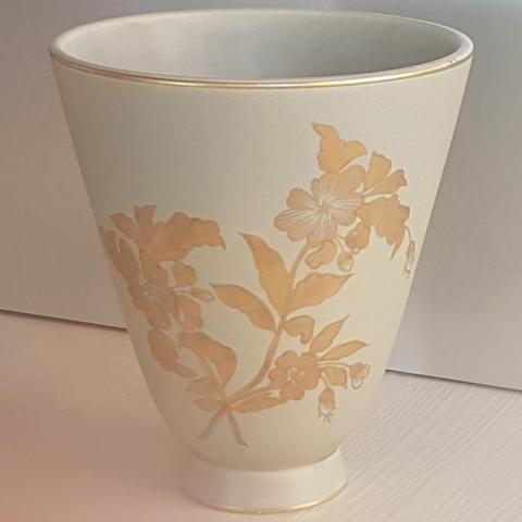 Ceramica smaltata in grigio opaco e decorata con fiori in oro.