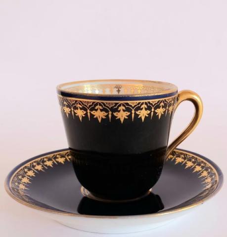 Tazzina in blu e oro decoro n. 1474, forma Napoli
