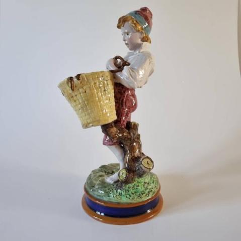 ragazzo con cesta, di Urbano Lucchesi firma incisa nella pasta