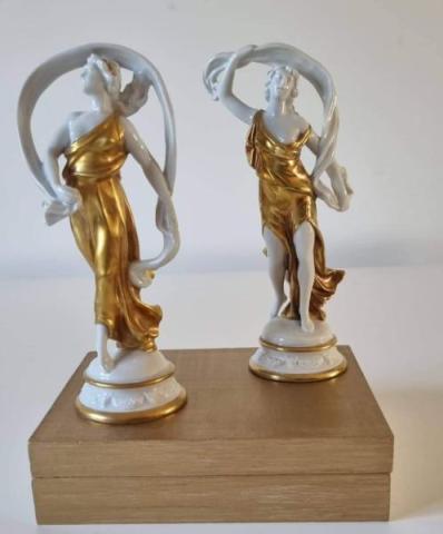 N. 2 statuine della serie danzatrici "Mitti e Ebe" Bianche con decoro in oro