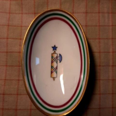 Bordata in oro, verde e marrone, con al centro un fascio littorio?