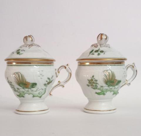 2 tazzine da collezione,  decoro Galli verdi, con coperchio