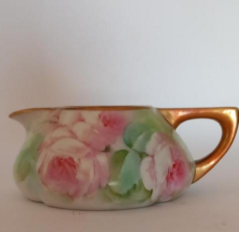 Piccola Lattiera decorata con fiori rosa ed oro periodo fioristi