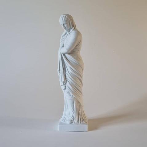 Figura femminile, dall'antico, con il capo coperto, con il braccio sinistro conserto e il destro che trattiene il velo. la figura è presa e modificata dalla figura dei Musei Vaticani del Mattei.