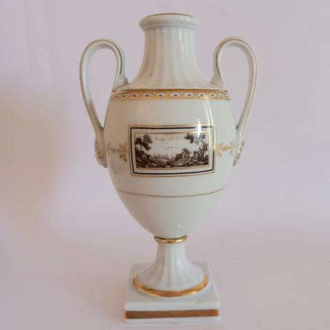 Decoro Fiesole, uno dei più rappresentativi della Manifattura, decoro che rappresenta i paesaggi Toscani.