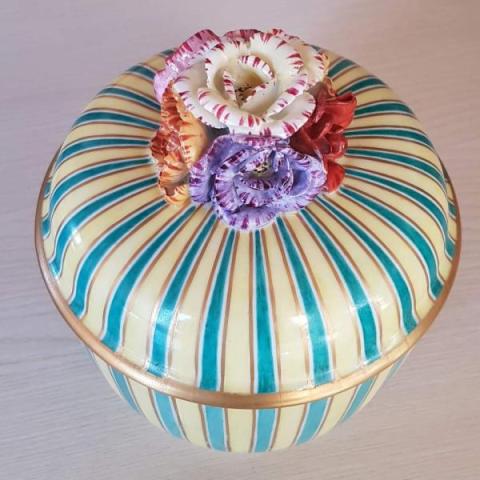 Grande scatola decorativa in porcellana bianca e oro