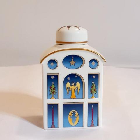 Porta Tè decorato in policromia con decori Natalizi