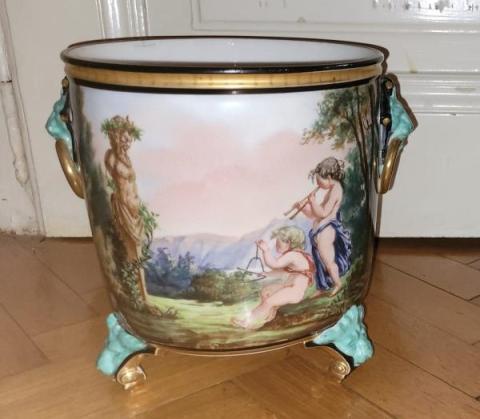 Cache-pot con decoro paesaggi e maniglie a grottesche, colori vari