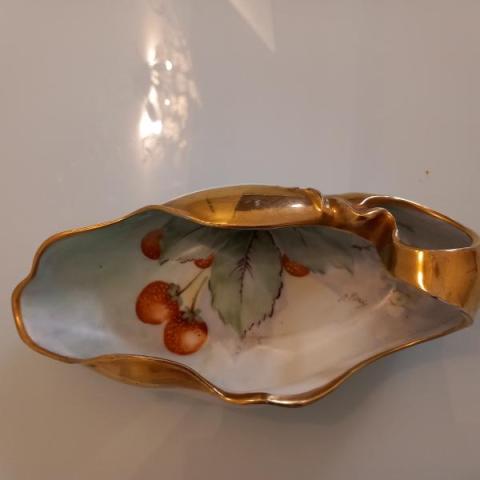 Piccolo vuotatasche dei fioristi firmato G. Pini, decoro con foglie e frutti