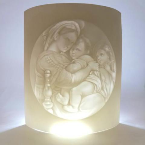 Litofania montata su base. Lampada creata per il giubileo 2000