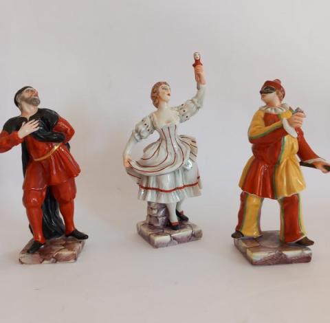 Tre mascherine della commedia dell'arte policrome