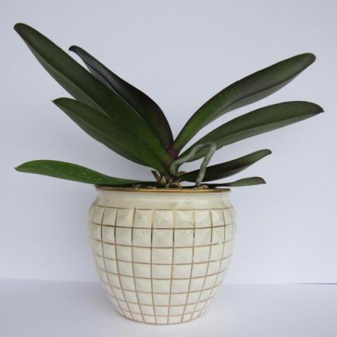 Vaso in terraglia con costolature orizzontali e verticali, nei colori bianco e oro