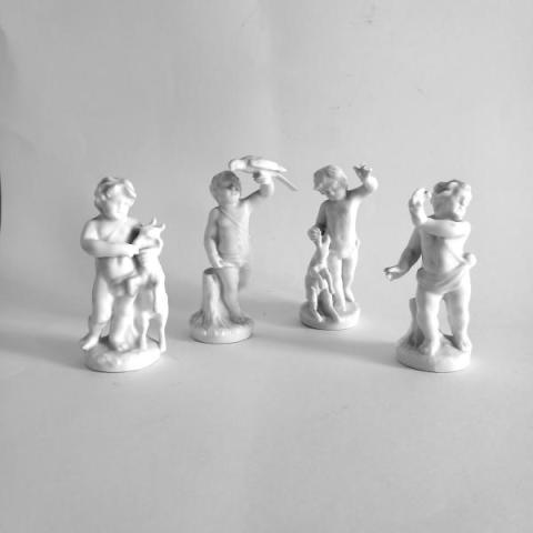 Serie di statuine rappresentanti puttini con animali