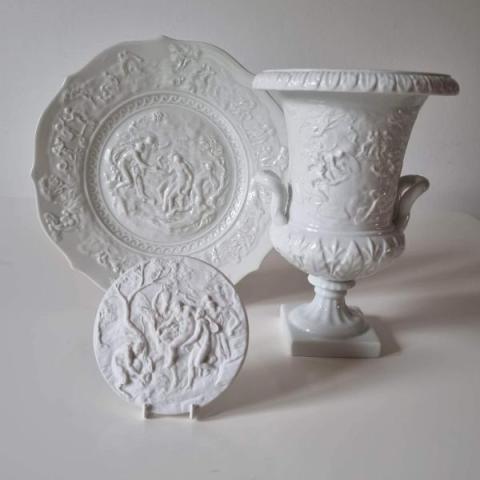 Vaso a cratere, piatto e tondino Manifattura Richard Ginori