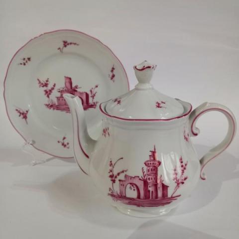 Teiera e piattino decoro "paesaggi porpora"